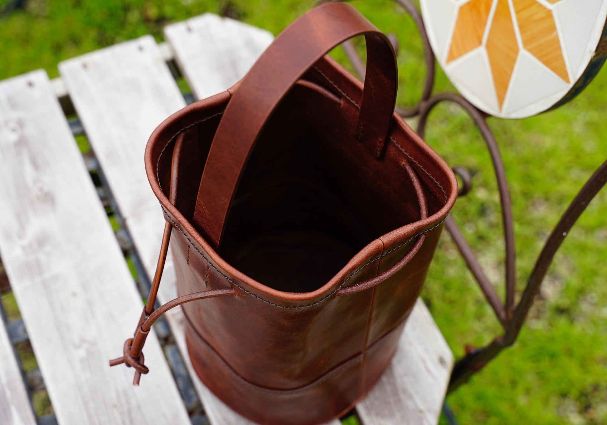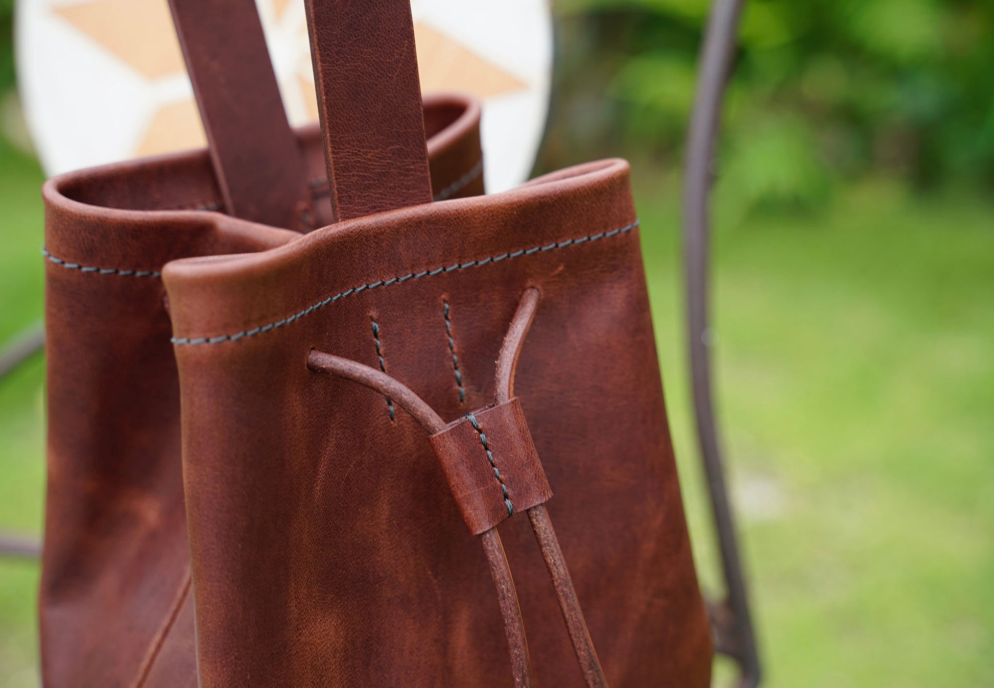 軽くてやわらかなホースハイド(※プルアップレザー)を使った巾着バッグです。